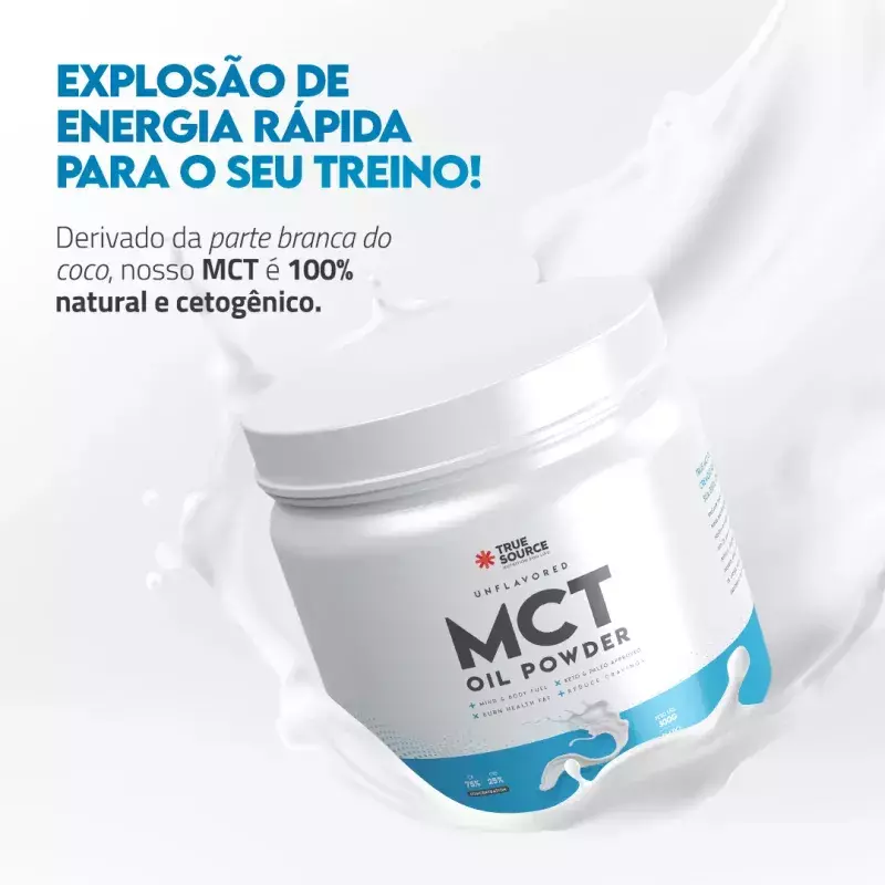 Suplemento alimentar em pó que visa aumento rápido de energia. Os triglicerídeos de cadeia média (TCM ou MCT - sigla em inglês) são retirados da parte branca do coco, onde tem como uma de suas características o efeito cetogênico, ou seja, fornecimento de energia ao organismo em substituição aos carboidratos.